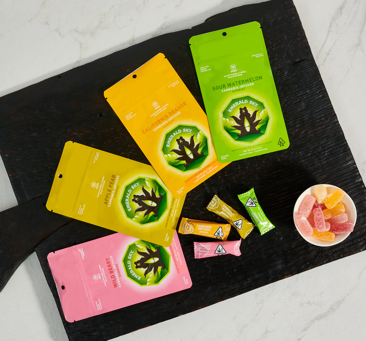 When you need a daytime pick-me-up, Emerald Sky’s California Orange Gummies deliver the right kick. Infused with flavorless Sativa THC, these chewy, citrus-flavored treats will help you start your day on the right foot. Each bite is individually wrapped, perfect to take with you anywhere. 10 servings per package. Each serving contains 10 mg of THC, using a proprietary dosing technology. Ingredients: Sugar, non-Gmo Corn Syrup, Gelatin, Water, Sorbitol, Citric Acid, Malic Acid, Palm Kernel Oil, Carnauba Wax, Natural Orange Flavor, Beta Carotene. (License No. CDPH-10002851)